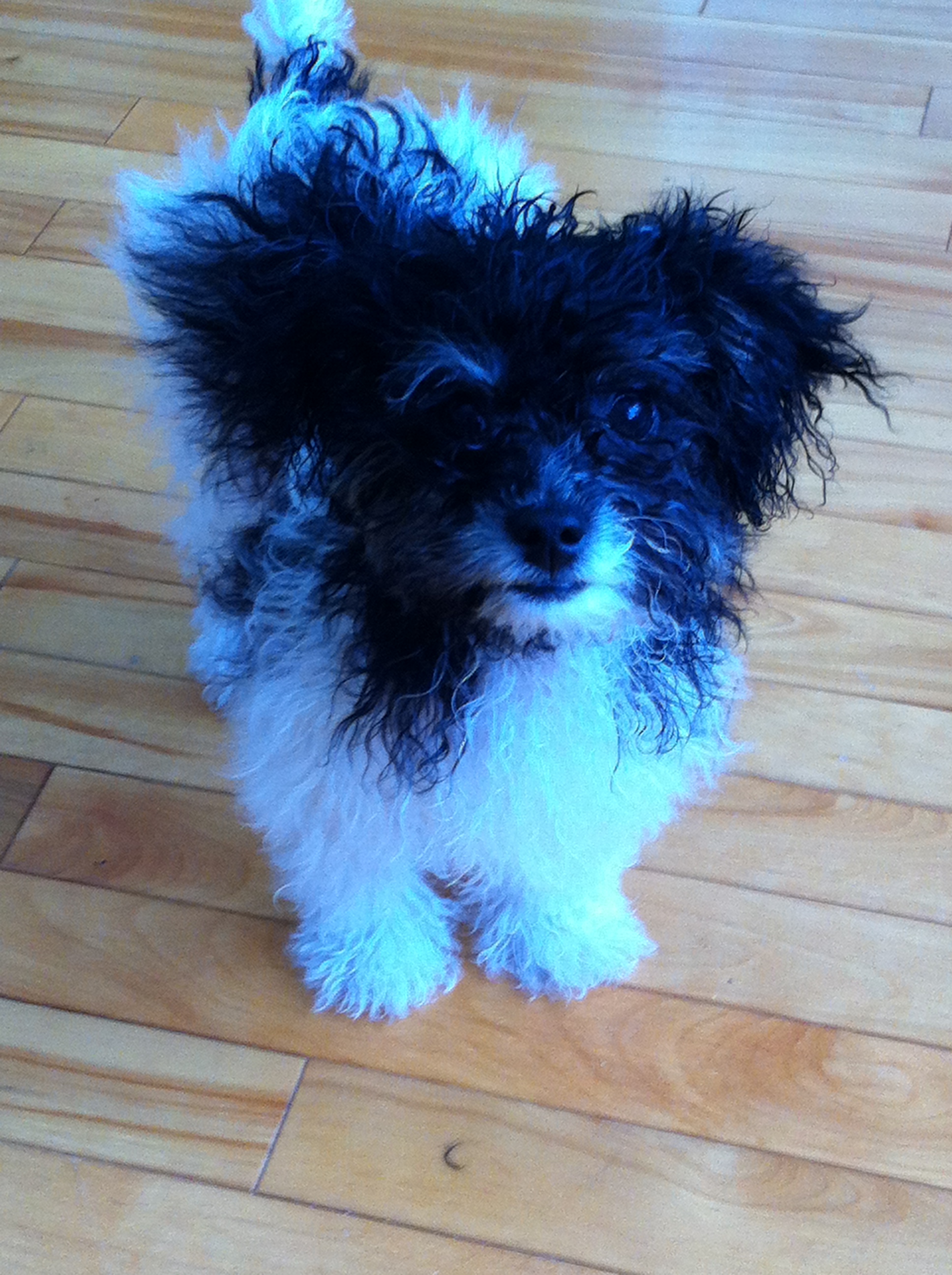 Here she is after her very first grooming, in February. Her coat was soft and fluffy then.