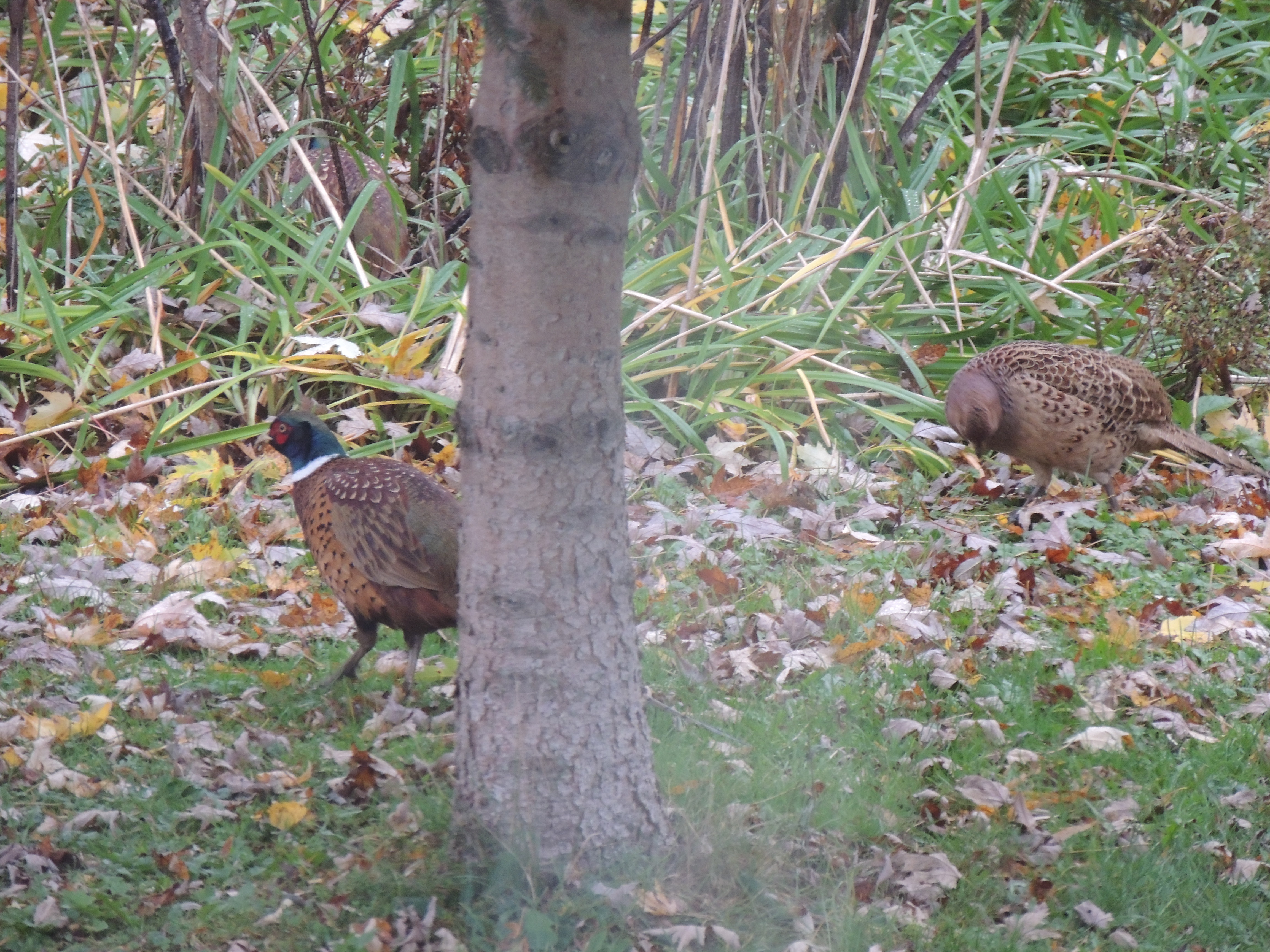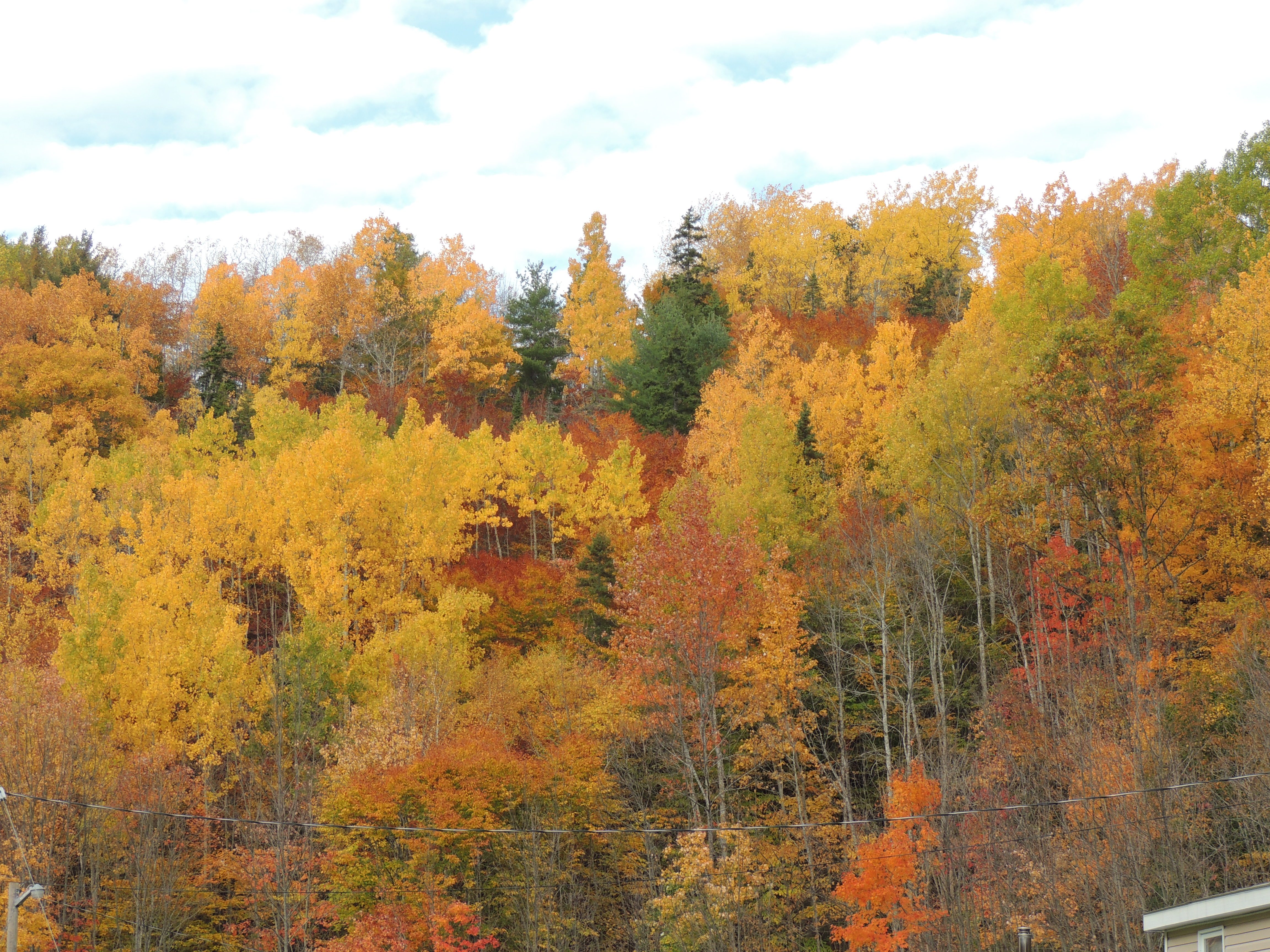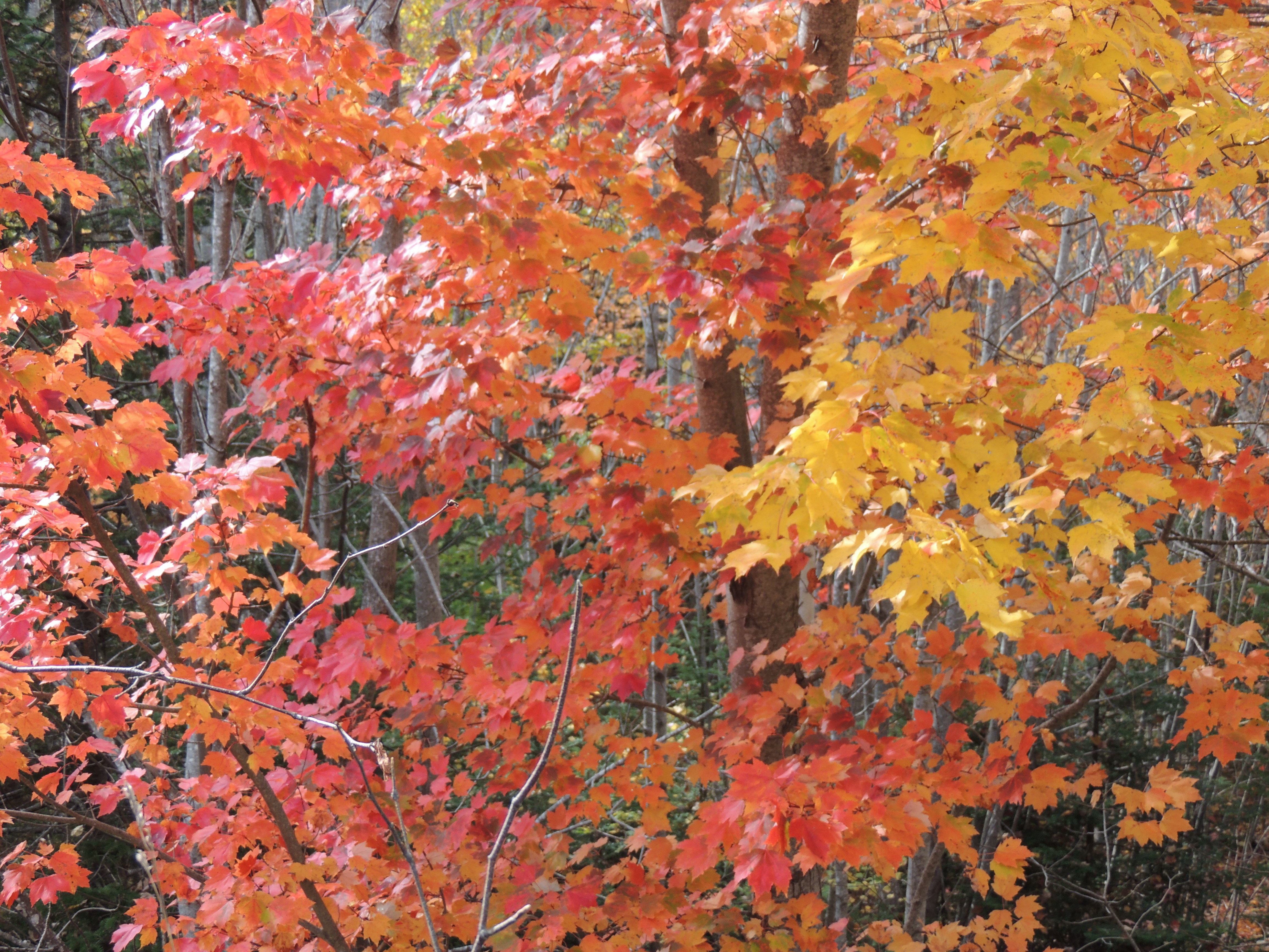 This is my lawn now. It’s covered in a blanket of beautiful leaves; yellow, orange, red, rusty-coloured. Those leaves once were various shades of green and hanging on the many trees we have, and many we don’t! The wind can do amazing decorating … and borrowing! 🙂